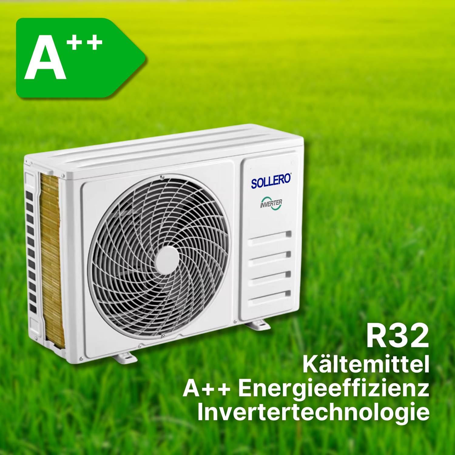 Mit einer Effizienzklasse A++ und dem umweltfreundlichen Kältemittel R32 (GWP 675) sorgt die Sollero Klimaanlage nicht nur für niedrige Energiekosten, sondern auch für maximalen Klimaschutz.